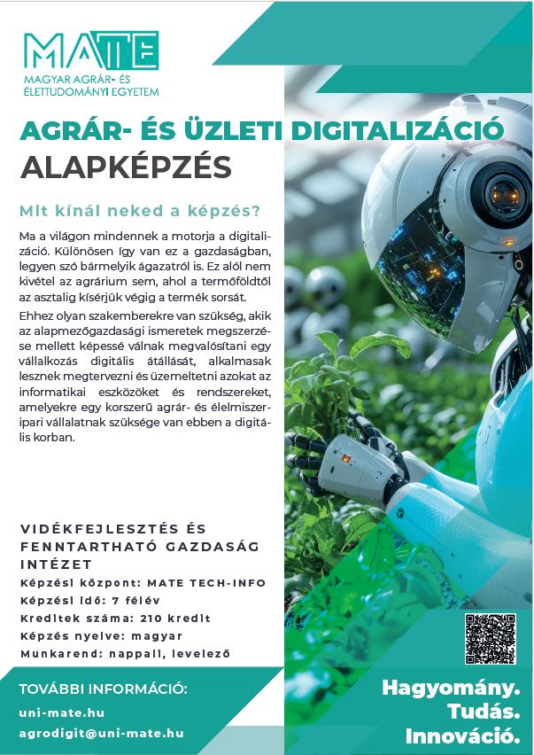 Új képzés a MATE VFGI portfoliójában az Agrár- és Üzleti digitalizáció alapképzés.